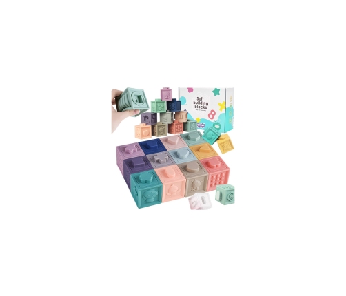 WOOPIE Układanka Klocki Sensoryczne zaciekawią każdego malucha. Dzięki ciekawym kształtom, kolorom i możliwości wydawania dźwięku przez ściśnięcie doskonale stymulują rozwój koordynacji wzrokowo-słuchowej i motorycznej dziecka. Klocki posiadają wypukłe kształty, które pozwalają na dopasowywanie ich do siebie i łączenie. Każdy bok klocka jest inny. Znajdują się na nich wypukłe kształty, zwierzątka i cyferki do nauki dla starszych dzieci. Klocki wydają dźwięki podczas ściskania. Dzięki swojej budowie sprawdzą się również doskonale jako gryzak. Produkt w stonowanej kolorystyce przeznaczony dla dzieci od 6 miesiąca życia.