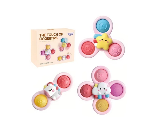 Zestaw Uroczych Spinnerów od marki WOOPIE zrobi na dziecku duże wrażenie. W zestawie znajdują się 3 szt. spinnerów: Jednorożec Gwiazdka Chmurka. Spinnery dziecko może zabrać i przyczepić wszędzie dzięki gumowym przyssawkom. Można przyczepić spinnera zarówno do szyby w czasie podróży oraz do wanny podczas kąpieli (zabawkę można moczyć). Łożyska spinnerów gwarantują długotrwały obrót. Odczepiane elementy pozwalają na łączenie ich w dowolny sposób. Zabawki posiadają gumowe elementy o różnej powierzchni co rozwinie zmysły dziecka oraz zadziała odstresowująco. Zabawa ćwiczy zwinność rączek oraz poprawia koordynację ręka-oko. Te zabawki mogą działać jako narzędzie do relaksacji i redukcji stresu, pomagając w osiągnięciu stanu spokoju i wyciszenia.