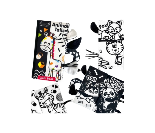 Książeczka kontrastowa od marki Woopie stworzona specjalnie dla maluchów. Szeleszczące i bardzo miękkie w dotyku strony rozwijają zmysły maluszka pełniąc funkcję sensoryczną. Czarno-białe ilustracje trenują wzrok i spostrzegawczość. W każdej ze stron wystają ogonki różnych zwierzątek, łapiąc za nię maluszek ćwiczy koordynację wzrokowo-ruchową. Książeczka może służyć jako zawieszka do wózka lub łóżeczka, mocowana na rzep.