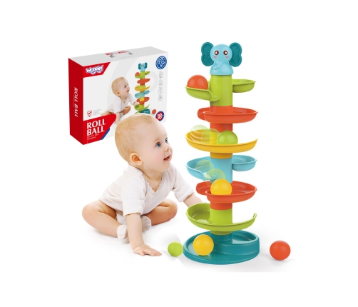 Kulodrom od WOOPIE to spiralna wieża zapewniająca niekończącą się zabawę. Ten kolorowy zestaw składa się z 8 kolorowych części , które maluch może z łatwością układać jedna na drugiej. Kulki puszczone pojedynczo z najwyższego poziomu turlają się na sam dół trasy. Kulodrom wyposażony jest w 3 lekkie i łatwe do uchwycenia kulki w różnych kolorach, które podczas poruszania wydają dźwięk. Rozmiar jest odpowiedni dla małych rączek i pomaga rozwijać koordynację wzrokowo-ruchową.