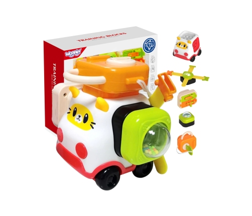 - - samochodzik kotek plus 4 manipulacyjne doczepiane klocki