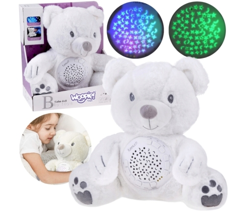 Mięciutki Miś Polarny z Projektorem od marki Woopie to idealny towarzysz snu dla każdego maluszka. Ta urocza przytulanka, wykonana z bezpiecznej, bawełnianej tkaniny, łączy w sobie funkcje projektora świetlnego i uspokajacza z muzyką. Miś pomaga ukoić dziecko do snu, emitując na suficie gwieździste niebo z księżycami w 7 różnych efektach świetlnych. Moduł dźwiękowy oferuje bogatą gamę uspokajających dźwięków: 10 delikatnych kołysanek oraz 5 rodzajów białego szumu. Moduł ma wbudowany timer z trzema opcjami czasu (30, 60 lub 90 minut), a także funkcję pętli (Loop) do ciągłego odtwarzania. Dodatkową zaletą jest możliwość prania misia w pralce (po wyjęciu modułu elektronicznego).