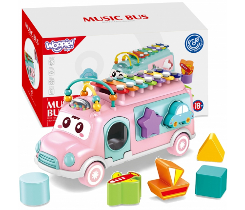 Samochodzik Muzyczny Sorter z Cymbałkami Różowy od marki Woopie to uroczy samochodzik w pastelowych kolorach, który zachwyci każdego malucha. Oferuje on wiele możliwości interakcji i stymulacji zmysłów, a także rozwija zdolności motoryczne i logiczne dziecka. Samochodzik ma wiele elementów do manipulowania i odkrywania. Dziecko może używać dołączonego młoteczka, aby grać na kolorowych cymbałkach umieszczonych na dachu autka. Na bokach samochodzika znajdują się otwory w różnych kształtach, do zabawki dołączone są kolorowe klocki pasujące do tych otworów. Dziecko może bawić się w dopasowywanie klocków do odpowiednich kształtów, co pomoże mu rozwijać koordynację wzrokowo-ruchową i rozpoznawanie kolorów. Koraliki na dachu, które dziecko może przesuwać ćwiczą zręczność i koncentrację dziecka.
