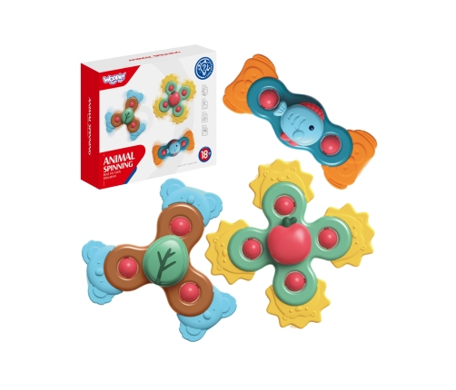 Zestaw Spinerów od marki WOOPIE zrobi na dziecku duże wrażenie. W zestawie znajdują się 3 szt. spinerów: jabłko, rybka i drzewko. Spinery dziecko może zabrać i przyczepić wszędzie dzięki gumowym przyssawkom. Można przyczepić spinera zarówno do szyby w czasie podróży oraz do wanny w czasie kąpieli (zabawkę można moczyć). Łożyska spinerów gwarantują długotrwały obrót. Zabawki posiadają gumowe wypukłe elementy i kółka do obracania, co rozwinie zmysły dziecka oraz zadziała odstresowująco. Zabawa ćwiczy zwinność roczek u dziecka oraz poprawia koordynację ręka-oko.
