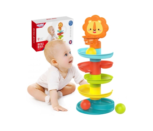 Zjeżdżalnia-Tor Piłeczek o pięciu poziomach z lewem-koszem od marki WOOPIE to idealny prezent dla Twojego dziecka! W trakcie zabawy maluch poznaje zasady działania kształtów kulistych na pochyłych powierzchniach. Wewnątrz kulek znajdują się drobne elementy, które wydają dźwięki podczas turlania się, dostarczając dodatkowych wrażeń sensorycznych. Zjeżdżalnia posiada pięć kolorowych poziomów, które musi pokonać położona przez dziecko piłeczka. Na górze znajduje się sympatyczny lew z koszem, do którego dziecko będzie próbować trafić, rozwijając tym samym swoje zdolności manualne, koordynację oraz celność. Zabawka jest wykonana z bezpiecznego i atestowanego plastiku. To wspaniały sposób na naukę poprzez zabawę!