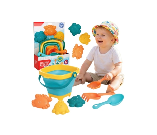 Silikonowe wiaderko z grabkami, łopatką i foremkami od marki WOOPIE. Fantastyczne wiaderko do piaskownicy, na plażę lub do ogrodu, dzięki któremu dzieci miło spędzą czas na świeżym powietrzu. Wiaderko, dzięki składanej konstrukcji, zajmuje niewiele miejsca, jest łatwe w transporcie i wygodne do przechowywania. W zestawie dołączone są trzy foremki do piasku. Zestaw zmieści się do dziecięcego plecaczka, do wózka czy plażowej torby. Góra, spód i rączka wiaderka są plastikowe, a ścianki wykonane są z grubego silikonu składanego harmonijkowo. Plastikowe są również grabki i łopatka.