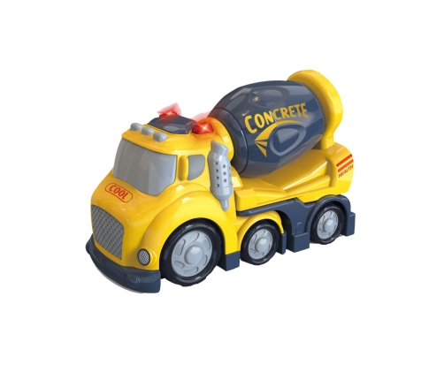 Betoniarka Construction Truck z serii CITY TRUCK to idealna zabawka dla każdego małego fana motoryzacji i miejskich pojazdów specjalnych. W skład zestawu wchodzi realistycznie odwzorowana betoniarka, wykonana z trwałego tworzywa sztucznego, wyposażona w efekty świetlne i dźwiękowe, które aktywują się po naciśnięciu przycisku na dachu pojazdu. Zabawka posiada akcesoria takie jak sygnalizator świetlny, znaki drogowe i pachołek.