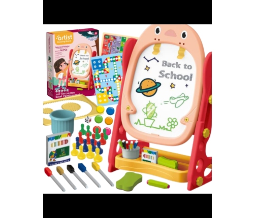 Dwustronna Tablica Magnetyczna do Rysowania od marki WOOPIE to wszechstronne narzędzie do nauki i pogłębiania zdolności artystycznych. Zestaw zawiera pełen pakiet akcesoriów do wszechstronnego użytkowania. Tablica jest prosta w montażu i dodatkowo posiada regulacje wysokości, dzięki czemu można ja dopasować do każdego dziecka. Zabawka jest niezbędna do codziennego rozwoju dziecka.