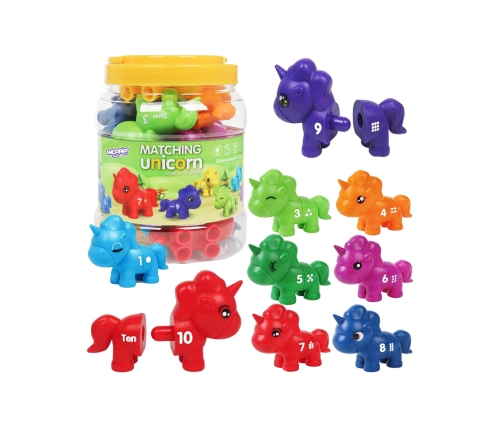 Zabawka edukacyjna "Dopasuj Cyferki” to kreatywna zabawka, która przeniesie Twoje dziecko do magicznego świata jednorożców. W trakcie zabawy maluchy mogą łączyć poszczególne części dinozaurów, dopasowując je według kolorów, cyferek lub kształtów. Jest to nie tylko świetna forma rozrywki, ale także rozwijająca zabawka, która stymuluje umiejętności manualne, spostrzegawczość i logiczne myślenie dziecka. Zestaw, składający się z kolorowych jednorożców, został zaprojektowany tak, aby zapewnić dzieciom godziny wciągającej i pouczającej zabawy.