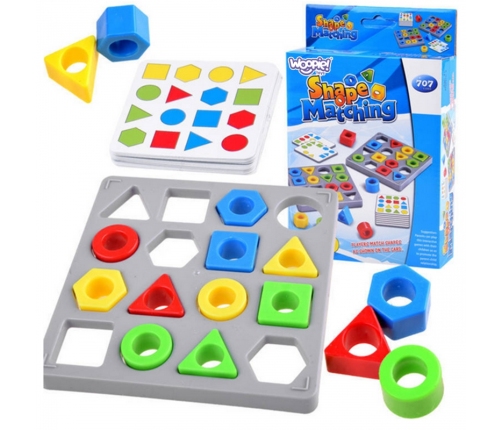 Zabawa polega na ułożeniu na podkładce wzoru, który został wylosowany przez gracza. Zgadzać musi się zarówno układ jak i kolory figur geometrycznych.
