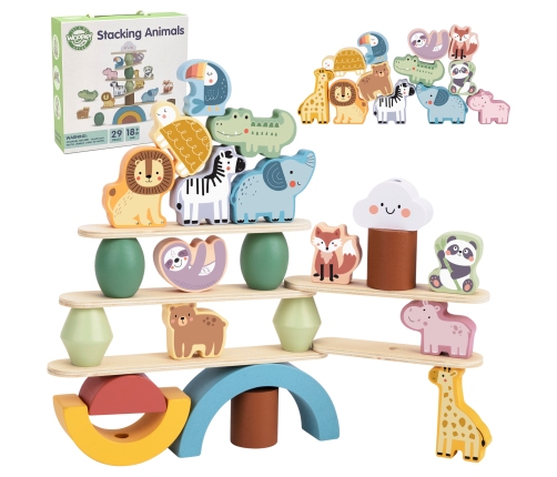 Układanka oferuje trzy poziomy trudności, dostosowane do wieku dzieci, co sprawia, że jest idealna dla maluchów od 18. miesiąca życia. Zachęcając do utrzymania równowagi, obliczania każdego ruchu oraz rozwijając zręczność i precyzję, dzieci są w stanie zbudować imponujące balansujące wieże ze zwierzątkami.