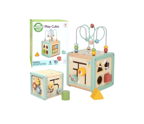 Drewniana Kostka Aktywności od marki WOOPIE GREEN to edukacyjny, kompleksowy zestaw w delikatnych, pastelowych kolorach. Kostka aktywności jest wielostronna, oferując różnorodne interaktywne panele na każdej ze stron. Znajdują się na niej zębatki, klocki, sortery i suwaki, które nie tylko pobudzają ciekawość dziecka, ale także rozwijają jego umiejętności motoryczne. Labirynt z koralikami to doskonałe narzędzie do poprawy koordynacji wzrokowo-ruchowej u dzieci. Część z labiryntem można schować wewnątrz kostki, co ułatwia przechowywanie.