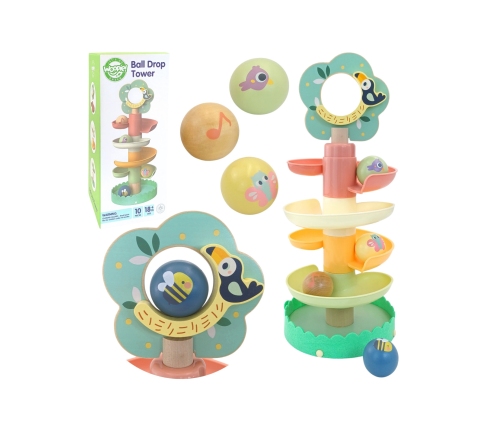 - - Stymulacja zmysłów – Dźwięki wydawane przez spadające kulki dostarczają dodatkowej stymulacji słuchowej, wspierając rozwój percepcji sensorycznej