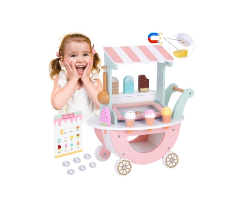 Drewniana Lodziarnia 3w1 od marki WOOPIE z serii GREEN to doskonała zabawka dla każdego dziecka. Uroczy drewniany wózek łączy w sobie funkcje lodziarni, cukierni oraz sklepu, zapewniając dzieciom wiele godzin kreatywnej i rozwijającej zabawy. Zestaw wyróżnia się bogatym wyposażeniem i dbałością o detale, oraz idealnie sprawdzi się do zabawy w odgrywanie ról i rozwijaniu wyobraźni.
