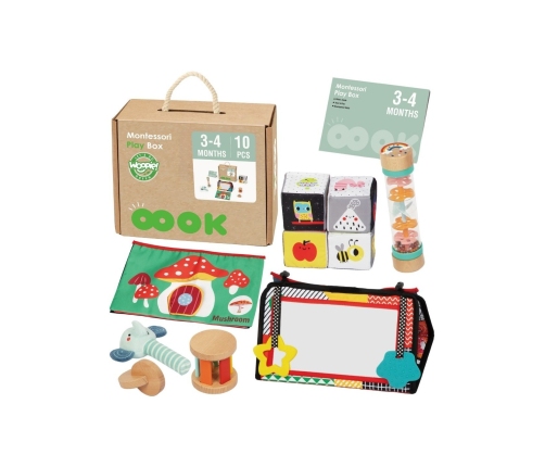Poznaj Box Pudełko XXL Montessori Edukacyjne 6w1 od marki WOOPIE GREEN — idealny zestaw sensoryczny dla maluszka w wieku 3-4 miesięcy. W skład boxa wchodzi 6 starannie dobranych zabawek, które wspierają rozwój psychomotoryczny dziecka, a także stymulują zmysły: wzrok, dotyk i słuch. Każda zabawka inspirowana jest metodą montessori, co sprawia, że nauka i zabawa idą w parze. To świetny prezent, który daje radość, rozwój i wartościowe spędzone chwile.