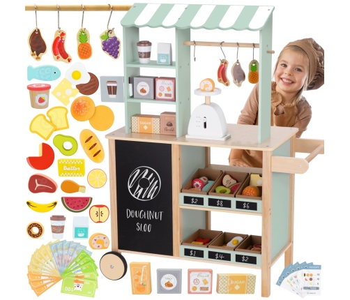 - Kreatywność – Zabawa w Drewniany Sklep Spożywczy rozwija kreatywność dziecka, pozwalając mu na tworzenie różnych scenariuszy zakupów. Dzieci mogą wymyślać, jakie produkty będą kupować, jak je wystawiać na straganie, a także organizować różne role, jak sprzedawca i klient. Ta swoboda w tworzeniu fabuł sprzyja rozwijaniu twórczego myślenia i pomysłowości.