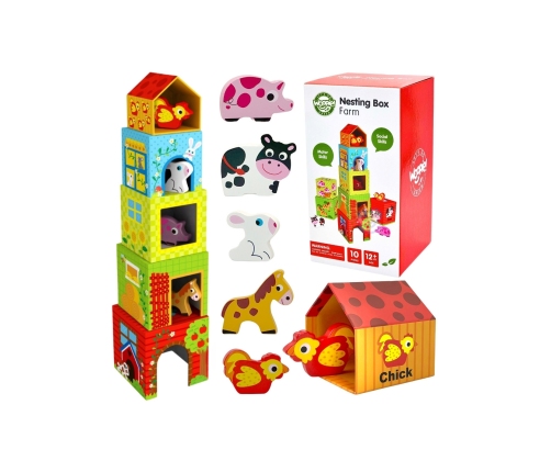 Układanka Farma od marki WOOPIE z serii GREEN to doskonała alternatywa tradycyjnych układanek i klocków. Dzieci dzięki kolorowym, pełnych ilustracji kostkom z łatwością połączą naukę z zabawą. Dodatkowo zestaw zawiera drewniane figurki zwierzątek, dla których kostki stają się domkiem! Dziecko samo decyduje jaka konstrukcję zbuduje. Kostki są ilustrowane w logiczny sposób rozwijający percepcje dziecka np. na największej umieszczona jest duża krówka i numer 1, a na najmniejszej mała kurka i numer 5. Dziecko łatwo może nauczyć się liczb, ponieważ na ścianie odpowiednio jest tyle zwierząt co pokazuję liczba do nich dopisana. Pomaga w rozróżnianiu zwierząt i pokazuje miejsc w których się chowają. Na pudełka napisane są angielskie nazwy zwierząt, co może pomóc w nauce angielskiego w późniejszym etapie życia. Kostki mogą być dodatkowo wykorzystane jako miejsce na przechowywanie różnych przedmiotów, takich jak kredki czy też długopisy. Dziecko może zabawić się i wyobrazić sobie życie na własnej farmie oraz pobudzić kreatywność wymyślając historie zwierząt z farmy. Zabawka nie zawiera ostrych krawędzi i pomalowana jest nietoksycznymi farbami bezpiecznymi dla Twojego dziecka.