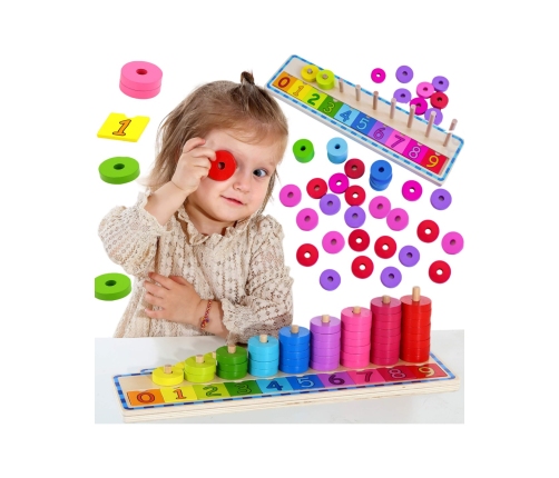 - - Kolorowe kółeczka do nakładania pomagają w łatwy sposób opanować podstawy liczenia i pomagają w rozróżnianiu kolorów