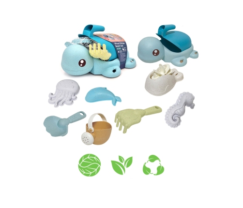 Zestaw do Piasku i Wanny Żółwik od marki WOOPIE z serii WOOPIE GREEN to świetny dodatek do piaskownicy, ogrodu a nawet wanny. Zestaw zawiera 8 elementów: żółwia + gumowe przyssawki, łyżkę, konewkę, 3 foremki, łopatkę i grabki oraz kołowrotek. Wiaderko ma wygodny uchwyt do przenoszenia. Zestaw ma najmodniejszy pastelowy design oraz został wykonany z organicznego i biodegradowalnego (podlegającemu samoistnemu rozkładowi) materiału. Dodatkowo podlega kompostowaniu. Produkt bezpieczny dla dzieci - dezynfekowany w 120 stopniach. Gwarancja super zabawy w piaskownicy, na plaży, w ogrodzie a nawet w wannie! Produkt przyjazny środowisku!