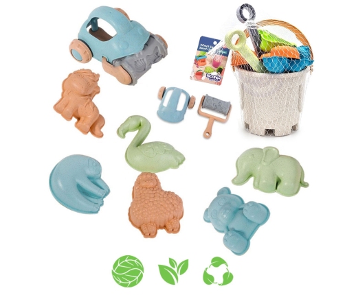 Zestaw do Piasku w Wiaderku od marki WOOPIE z serii GREEN to świetny dodatek do piaskownicy, a nawet ogrodu. Zestaw zawiera 10 elementów: wiaderko, 6 foremek, łopatkę i grabki oraz samochodzik. Wiaderko ma wygodny uchwyt do przenoszenia. Zestaw ma najmodniejszy pastelowy design oraz został wykonany z organicznego i biodegradowalnego (podlegającemu samoistnemu rozkładowi) materiału. Dodatkowo podlega kompostowaniu. Produkt bezpieczny dla dzieci - dezynfekowany w 120 stopniach. Gwarancja super zabawy w piaskownicy, na plaży, a nawet w ogrodzie! Produkt przyjazny środowisku!