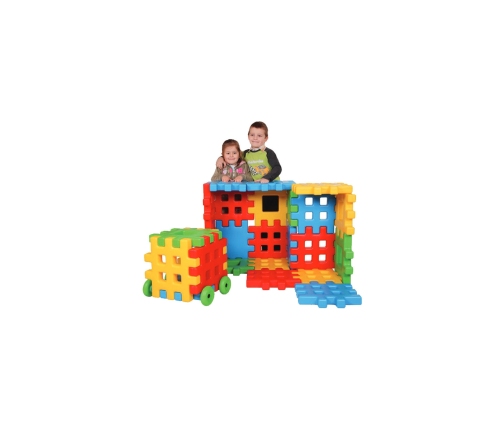 Klocki są tak zrobione, że pasują do siebie pod różnym kątem. Dzieci z tymi klockami ćwiczą swoją koncentrację i rozwijają wyobraźnie. Uczą się nowych kształtów budując ciekawe konstrukcje takie jak: samochodzik, domek, zagroda, mur, labirynt i wiele innych.
