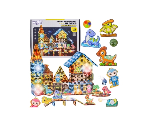 Odkryj magiczny świat dinozaurów z zestawem Świecących Klocków Magnetycznych 3D od marki Woopie! Ten unikalny zestaw konstrukcyjny to prawdziwy raj dla małych budowniczych. Dzięki magnetycznym elementom, które świecą w ciemności, dzieci mogą stworzyć niesamowite budowle, bazy i królestwa dla swoich ulubionych dinozaurów. To doskonała zabawka, która łączy naukę z zabawą, rozwijając wyobraźnię i umiejętności inżynierskie Twojego dziecka. Zbudujcie wspólnie bajkowy świat pełen prehistorycznych przygód!