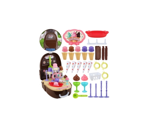 WOOPIE Little Chef saldējuma salona komplekts mugursomā ļaus jūsu bērnam spēlēties kā pavāram, pārdevējam un saldējuma meistaram – jebkur un kad vien vēlas! Bērni mīl palīdzēt vecākiem virtuvē un spēlēties kā pārdevēji kopā ar draugiem, tāpēc šis komplekts ir ideāls ikvienam mazajam. Komplekts satur 36 elementus: visu nepieciešamo, kas atrodas katrā saldējuma veikalā. Spēle veic arī somas funkciju, pateicoties plecu siksnām, tādējādi komplektu var ņemt līdzi visur. Lomu spēles un vecāku/profesiju atdarināšana attīsta bērna apziņu un stimulē viņa iztēli un radošumu.