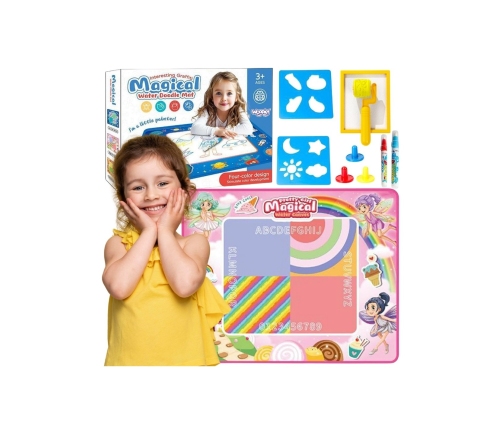 Mata wodna marki Woopie to innowacyjna zabawka edukacyjna, która umożliwia dzieciom tworzenie rysunków wyłącznie za pomocą wody – bez zabrudzeń i ryzyka poplamienia. Po kilku minutach rysunki stopniowo znikają, dając dziecku możliwość tworzenia nowych dzieł bez końca. Duża powierzchnia do malowania i bogaty zestaw akcesoriów zapewniają godziny bezpiecznej, kreatywnej zabawy w domu lub przedszkolu. Bajkowy motyw pełna pastelowych barw z grafikami słodkości i wróżek pobudza wyobraźnię i zachęca do zabawy. Mata poprawia zdolności manualne, koordynację ręka-oko i jest świetnym sposobem na naukę przez zabawę. Można z niej korzystać zarówno w domu jak i w ogrodzie.