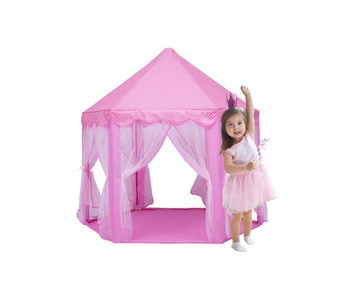 Ten uroczy różowy namiot pałacowy to idealne miejsce, gdzie Twoje dziecko będzie mogło przenieść się do świata bajkowych przygód, snuć fantastyczne opowieści i bawić się w królewskim stylu! Stworzony z dbałością o detale, stanie się sercem każdego pokoju dziecięcego.