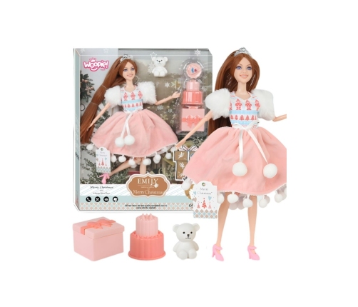 Lalka Emi z misiem i zimową sukienką od marki Woopie to wyjątkowa zabawka, która przeniesie każde dziecko w magiczny świat mody i marzeń. Piękna lalka o długich, brązowych włosach z koroną na głowie, ubrana w zimową sukienkę z pomponami w futerkowymi rękawkami zachwyci każdą małą miłośniczkę stylu. W zestawie znajduje się również uroczy miś – wierny towarzysz zabawy oraz akcesoria: prezent, tort i talerzyk z kawałkiem tortu. Strój i akcesoria są w różowo-białej kolorystyce, Zabawka wyróżnia się wysoką jakością wykonania, nowoczesnym designem oraz licznymi detalami, które sprawiają, że zabawa staje się jeszcze bardziej realistyczna i angażująca. Zestaw z lalką Emilka to nie tylko piękna ozdoba pokoju, ale przede wszystkim źródło radości, kreatywności i rozwoju dla Twojego dziecka. Dzięki niej maluch może tworzyć własne historie, bawić się w pokaz mody czy przyjęcie z pupilem. To gwarancja długich godzin beztroskiej zabawy pełnej uśmiechu i fantazji!