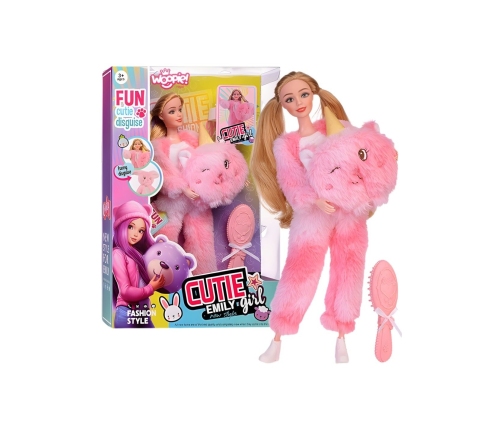 Przywitaj się z uroczą lalką Emi od marki WOOPIE ROYAL, która zachwyca swoim słodkim, różowym strojem! Miękki, futrzany kombinezon z kapturem w kształcie zwierzaka sprawia, że lalka wygląda niezwykle przytulnie i modnie. To idealna towarzyszka do zabawy, przytulania i tworzenia wyjątkowych historii! Dzięki wysokiej jakości wykonania i pięknym detalom, Emily stanie się ulubioną lalką każdej dziewczynki. Z tą lalką zabawa nigdy się nie kończy – to prawdziwa moda i uroczy styl w jednym!
