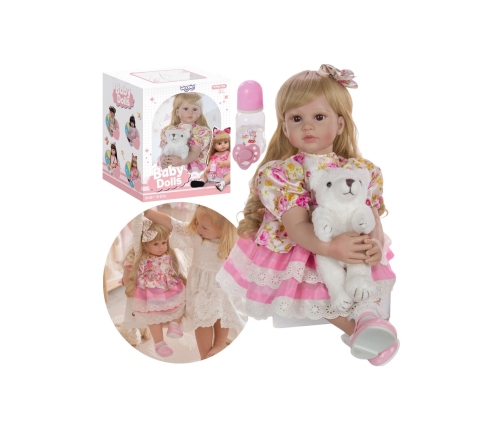 Interaktywna Lalka od marki WOOPIE z serii ROYAL jest jak prawdziwe dziecko!.Dzięki zabawie z lalką dziecko rozwija w sobie poczucie empatii oraz odpowiedzialności! Lalka jest miękka w dotyku, a jej piękne oczy przyciągają uwagę dziecka. Zdecydowanym atutem lalki są jej piękne, długie i lśniące włosy, wprost stworzone do czesania.Dzięki świetnej jakości włosów twoje dziecko może oddać się kreatywności podczas układania przeróżnych fryzur. Dłonie lalki są dopracowane dodając im realizmu poprzez delikatne paznokcie,a lekko zarumienione policzki podkreślają urodę lalki. Dużo elementów w zestawie - zabawa nie będzie miała końca, maluch będzie zadowolony, a Ty - będziesz mieć spokojną głowę, że spędza czas na wartościowej zabawie. Nasze lalki zostały wykonane z ogromną dokładnością i starannością o szczegóły, aby wyglądały jak prawdziwe.Lalka ma na sobie różową sukienkę z uroczymi falbanami. Sukienka odcięta jest w talii i ozdobiona kolorowym nadrukiem. Uzupełnienie stroju stanowią różowe buciki oraz pasująca opaska na głowie dziewczynki.