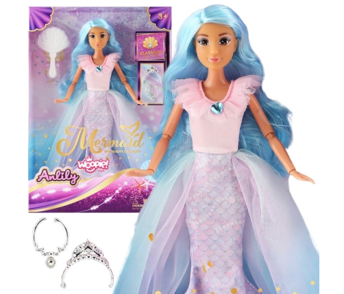 Przenieś swoje dziecko w magiczny, podwodny świat dzięki lalce Syrence Lili od marki Woopie Lalka zachwyca długimi, błękitnymi włosami i pastelowym, dwuczęściowym strojem z ogonem syreny oraz tiulową narzutką. Do zestawu dołączone są eleganckie akcesoria – lusterko, tiara i pierścionek – które urozmaicają zabawę i pozwalają na kreatywne stylizacje. Lili zapewnia wiele godzin fantastycznej zabawy, pobudzając wyobraźnię i inspirując do odgrywania historii. To idealny prezent dla każdej małej miłośniczki magii i podwodnych przygód!