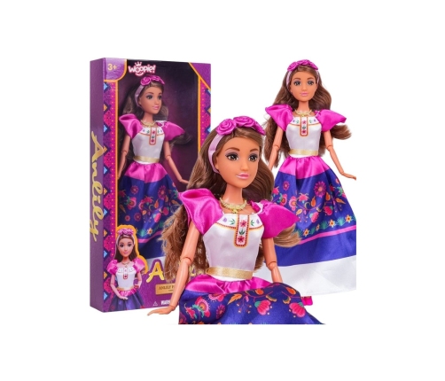 Poznaj uroczą lalkę Lily w tradycyjnym stroju meksykańskim, która zabierze Twoje dziecko w świat kreatywnej zabawy i wyobraźni! Lalka ma piękne, długie, brązowe włosy ozdobione opaską z różowymi różami. Jej strój zachwyca soczystymi kolorami i bogactwem wzorów, nawiązując do stylistyki ludowej. Idealna dla każdej małej księżniczki, która uwielbia bawić się w odgrywanie ról i przebieranie!Lalka posiada ruchome ręce i nogi, co urozmaica zabawę. Wysokiej jakości wykonanie i dbałość o szczegóły sprawiają, że będzie wspaniałym dodatkiem do kolekcji i doskonałym pomysłem na prezent!