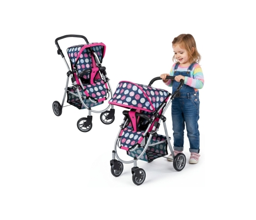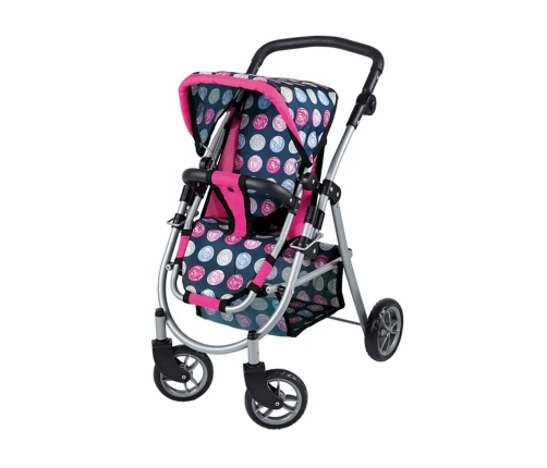 Stylowy i funkcjonalny wózek dla lalek od marki WOOPIE to wymarzony prezent każdej małej miłośniczki zabawy lalkami. Dzięki regulowanemu siedzisku można go łatwo dostosować do różnych potrzeb zabawy, umożliwiając przewożenie ulubionych lalek. Obracające się przednie koła gwarantują płynność prowadzenia, a solidna konstrukcja zapewnia stabilność podczas spacerów. Wózek wyposażono w miękką, wygodną rączkę i pojemny koszyk na akcesoria, który pomieści wszystkie drobiazgi niezbędne podczas zabawy. Składany daszek chroni lalki przed "słońcem", a kompaktowa konstrukcja sprawia, że wózek łatwo przechowywać, gdy zabawa dobiegnie końca.