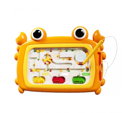 Odkryj fascynujący świat nauki przez zabawę z naszą magnetyczną tablicą edukacyjną w kształcie kraba od marki Woopie! Tablica została zaprojektowana z myślą o wczesnej edukacji i wspiera rozwój sensoryczny, manualny i poznawczy najmłodszych poprzez angażujące aktywności, takie jak sortowanie kulek według kolorów przy pomocy magnetycznego rysika, nawigacja po labiryncie i trzymanie rysika w prawidłowy sposób. Wykonana z wysokiej jakości, bezpiecznych materiałów, gwarantuje trwałość i komfort użytkowania przez wiele godzin aktywnej zabawy. Jaskrawy pomarańczowy kolor tablicy oraz jej kształt w formie kraba zachęcają malucha do zabawy. Tablica nie wymaga baterii, a dzięki kompaktowym rozmiarom idealnie sprawdzi się zarówno w domu, jak i w podróży.