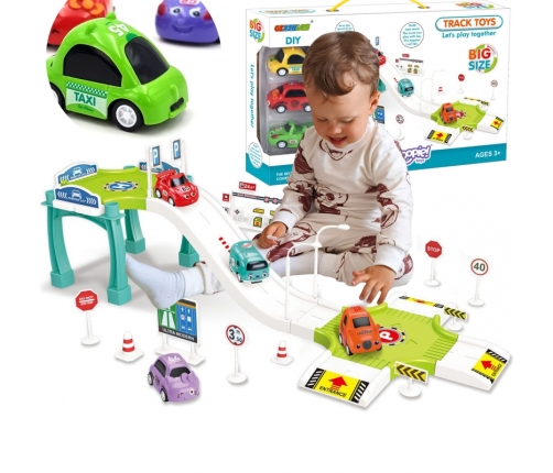 Tor Samochodowy od marki WOOPIE zachwyci każdego malucha. Maluch może jeździć 3 autami po stromej drodze i zaparkować na poziomie lub zatankować auto na stacji benzynowej. Dodatkowo w zestawie znajduje się wiele znaków drogowych, które urozmaicą zabawę. Akcesoria i wygląd torów są naprawdę realistyczne. Dziecko uczy się podstaw ruchu drogowego, co pobudza jego świadomość na przyszłość. Zabawka przez zabawę uczy! Tor gwarantuje wiele godzin zabawy!