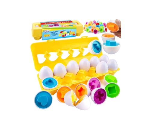 Jajka Montessori od marki WOOPIE to edukacyjna zabawka rozwijająca motorykę i koordynacje wzrokowo-ruchową dziecka. Zestaw zawiera 12 białych jajek w wytłoczce, które zachęcą do zabawy poprzez swoje kolorowe wnętrze w różnych kształtach. Zabawa polega na dopasowaniu ze sobą dwóch połówek jaj, tak aby utworzyły całość. Jajka należy dopasować zarówno kolorem jak i kształtem.