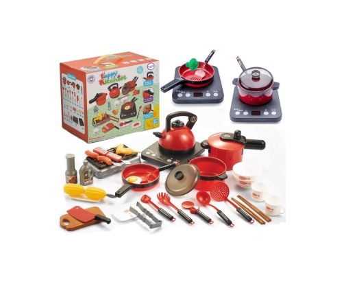 Woopie spēļu virtuves piederumi ir ideāla rotaļlieta bērniem, kas vēlas spēlēties ar ēdiena gatavošanu, mājas vai restorāna spēlēm. Tie lieliski imitē īstus katlus un virtuves piederumus. Ar šo komplektu bērns var pagatavot ēdienu savām lellēm vai lācīšiem. Komplekts ietver: katlu, tējkannu, pannas, šķīvjus, galda piederumus, griešanas nazīšus, griešanas dēli, indukcijas plīti, grilu un daudzus citus noderīgus aksesuārus. Šis virtuves piederumu komplekts nodrošina interesantas spēles iespējas mājās, bārā vai restorānā. Tas ir ideāli piemērots gan pašdarbības spēlēm, gan spēlēm ar pieaugušajiem vai citiem bērniem. Piederumi būs lieliska dāvana gan meitenēm, gan zēniem. Spilgti un dzīvotspējīgi toņi piesaistīs bērna uzmanību un mudinās uz spēlēšanos.