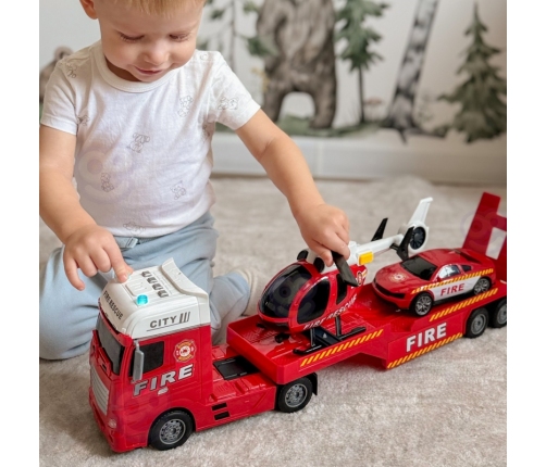 Zestaw straży pożarnej z lawetą, helikopterem i samochodzikiem od marki Woopie dostarczy Twojemu dziecku niezliczone godziny kreatywnej i emocjonującej zabawy. Zabawka została zaprojektowana z myślą o najmłodszych użytkownikach, łącząc w sobie edukację z rozrywką, a także rozwój ważnych umiejętności manualnych i społecznych. Każdy element zestawu wykonano z trwałych i bezpiecznych materiałów, które są przyjazne dla dzieci i odporne na intensywne użytkowanie. Dzięki temu zabawka jest nie tylko atrakcyjna wizualnie, ale również funkcjonalna i wytrzymała. Zestaw zawiera klasyczne pojazdy, które dzieci doskonale znają i uwielbiają – lawetę, która umożliwia transport innych pojazdów, helikopter z realistycznie obracającym się śmigłem oraz samochód straży pożarnej. Zarówno laweta jak i helikopter posiadają funkcje świetlne i dźwiękowe aktywowane przyciskami. Zestaw zainteresuje dzieci fascynujące się motoryzacją, akcjami ratunkowymi oraz zabawą w strażaka, ucząc jednocześnie odpowiedzialności i pracy zespołowej.
