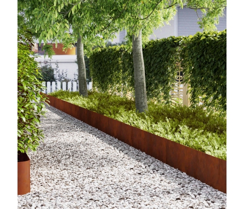 Šis cietais dārza apmale apvieno funkcionalitāti ar stilu. Tas ir izstrādāts, lai padarītu tavu āra telpu pievilcīgu ar spēcīgu un stilīgu robežu. Izgatavots no laika apstākļiem izturīga tērauda, šī apmale iezīmē skaidras robežas tavam dārzam, vienlaikus piešķirot modernu industriālo noskaņu, kas iederas jebkurā dārza stilā.
