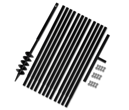 - Komplektā ir iekļauts zemes urbis, rokturis, 12 pagarinājumu caurules un dažas skrūves