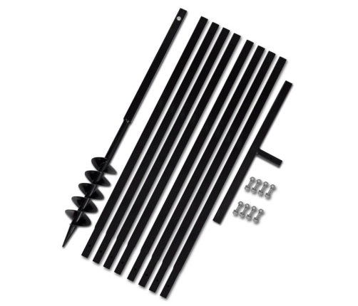 - Komplektā ir iekļauts zemes urbis, rokturis, 8 pagarinājumu caurules un dažas skrūves
