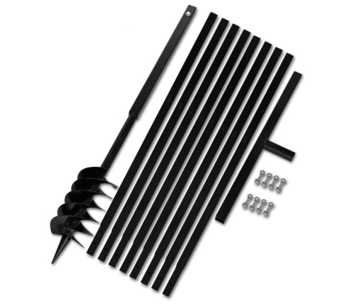 - Komplektā ir iekļauts zemes urbis, rokturis, 8 pagarinājumu caurules un dažas skrūves