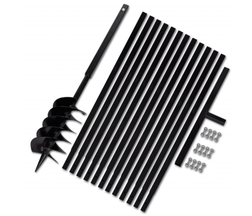 - Komplektā ir iekļauts zemes urbis, rokturis, 12 pagarinājumu caurules un dažas skrūves