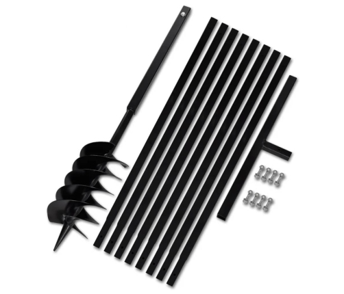 - Komplektā ir iekļauts zemes urbis, rokturis, 8 pagarinājumu caurules un dažas skrūves