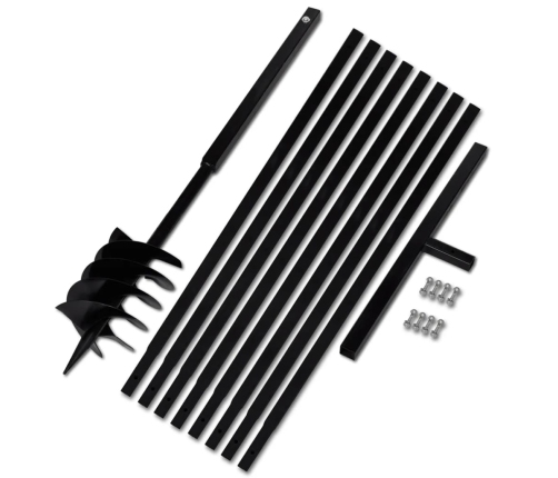- Komplektā ir iekļauts zemes urbis, rokturis, 8 pagarinājumu caurules un dažas skrūves
