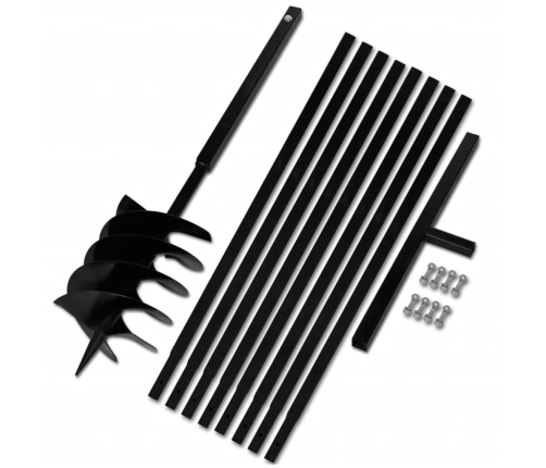 - Sūtījumā ir iekļauts zemes urbis, rokturis, 8 pagarinājumu caurules un dažas skrūves