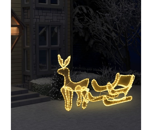 Šis skaistais Ziemassvētku dekors ar ziemeļbriedi un kamanām noteikti piesaistīs uzmanību. Tā formu aizpilda siets un siluetu pārklāj LED lampiņas.