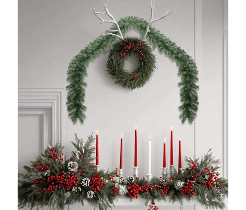 Šī Ziemassvētku girlanda piešķir lielisku tradicionālo noskaņu taviem svētkiem. Ar mīļo pusmēness formu un bagātīgu zaļu krāsu, tā izgaismo jebkuru telpu, radot elegantu un svinīgu atmosfēru. Tekstūra PVC dizains padara to reālistisku, un tas noteikti apbur tavu viesu uzmanību un uzlabo svētku gaisotni.